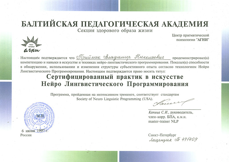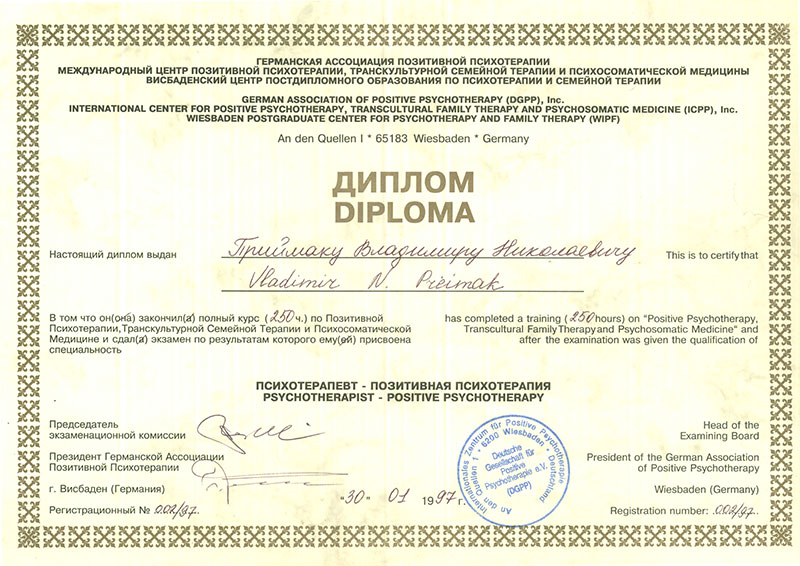 Приймак Владимир Николаевич – ваш личный профессиональный психотерапевт, нарколог, сексолог