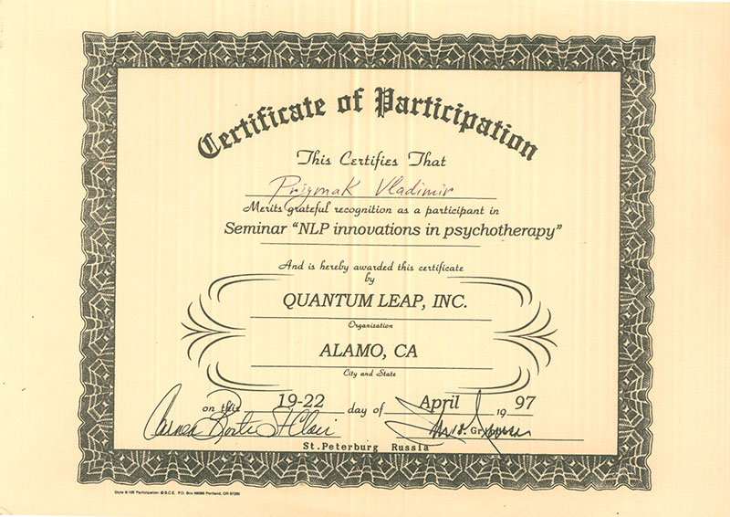 В это же время прошел подготовку по психотерапии, целительству и наркологии у ведущих специалистов Австрии, Германии США и Японии.
